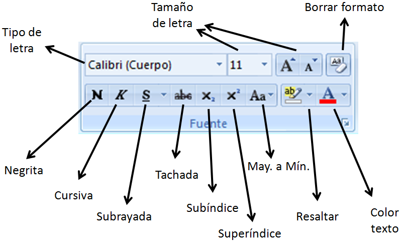 Ya hemos visto como trabajar con el tipo y tamaño de la fuente, ahora veamos más alternativas dadas para cambiar formato.